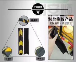 護角采用橡膠經蒸汽高溫硫化整體模壓而成,集橡膠的韌性于一身,橡膠體軟硬度適中,耐磨且彈性大,能有效地保護車輛和建筑物。配有醒目黃色反光警示膜,黑黃相間,加強白天的可視性,嵌入式的高亮度黃色反光材料,在光線不佳或夜晚更能吸引駕車者注意,提高安全性。